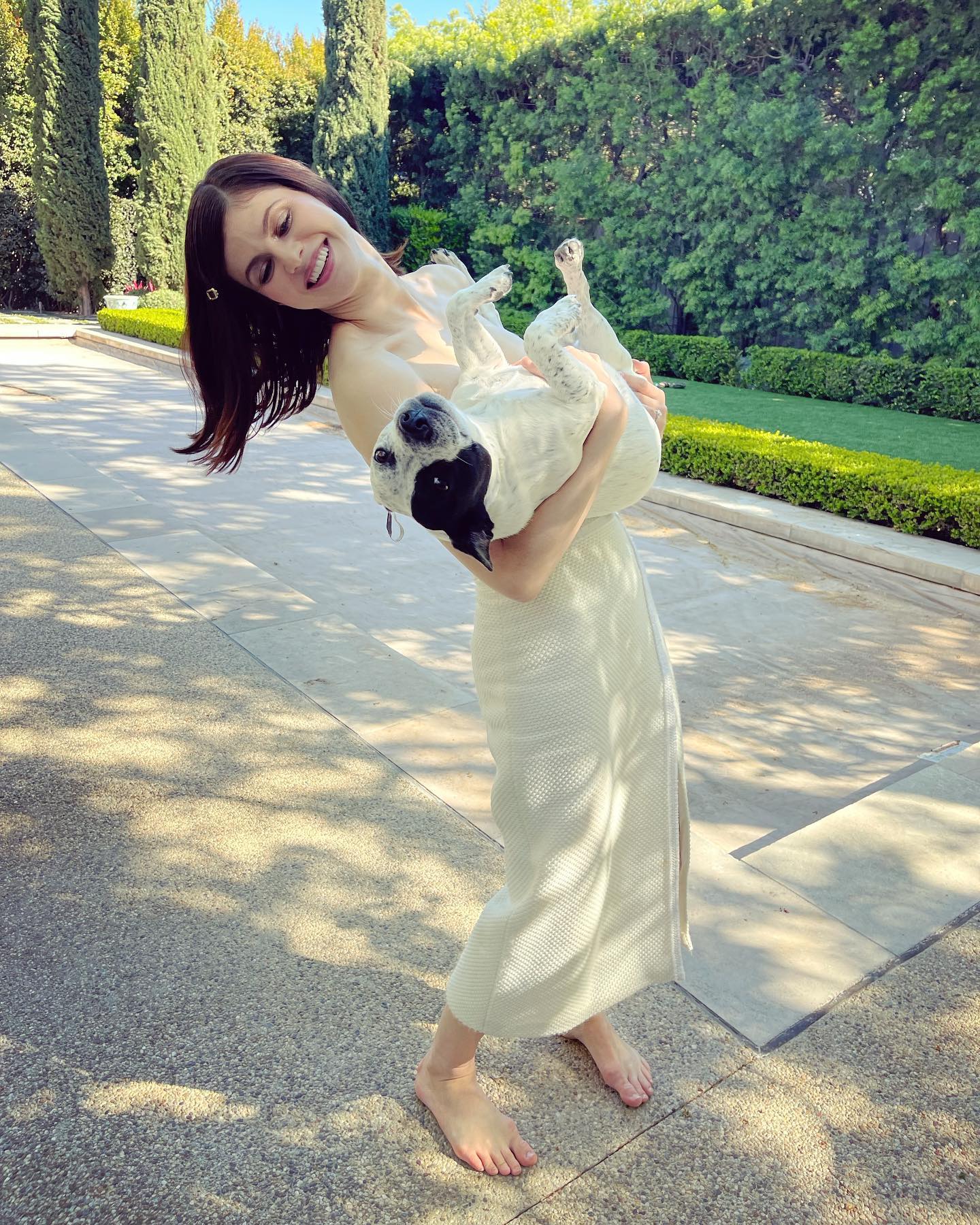Grace and simplicity come together in these moments featuring Alexandra Daddario. The focus gently follows her feet, grounding each frame in a sense of ease and natural beauty. There’s an effortless flow to the images, where nothing feels forced and every detail falls naturally into place. The soft balance between movement and stillness creates a calm, inviting atmosphere that draws you in without asking for attention. It’s a quiet celebration of understated style, where confidence is felt rather than shown, and simplicity becomes the most captivating element of all.